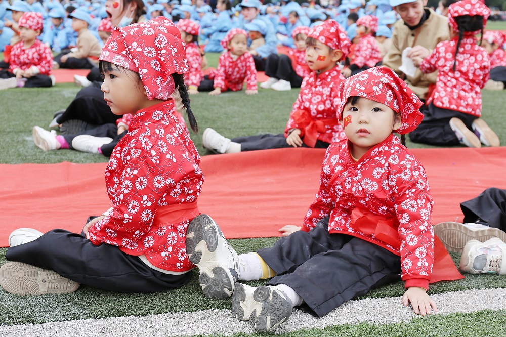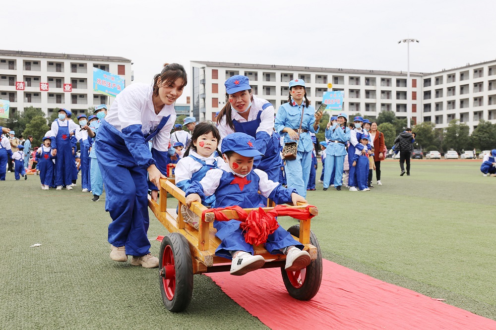 亲子游戏环节,家长和孩子们共同参与插秧劳作、运输粮食、推小推车等小游戏。在爸爸妈妈的鼓励声中,在同伴的加油声中,孩子们勇敢地往前冲,感受着游戏的快乐。场上不时爆发出快乐的笑声,孩子们脸上洋溢着天真幸福的笑容,整个运动场瞬间变成了欢乐的海洋。