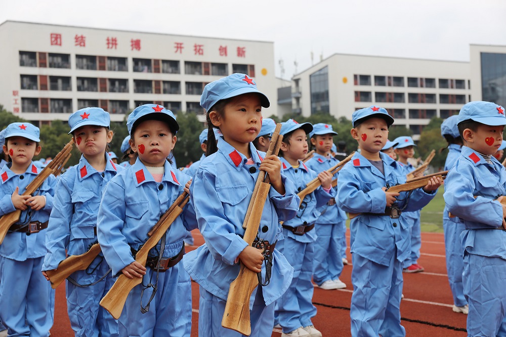 运动会在铿锵有力的歌声中徐徐拉开了帷幕。小小运动员们分为各个生产小队,身着各自队列的服装,手拿“生产工具”,在老师的带领下踩着整齐的步伐,意气风发、斗志昂扬地行进到主席台,响亮地喊出各班的口号。