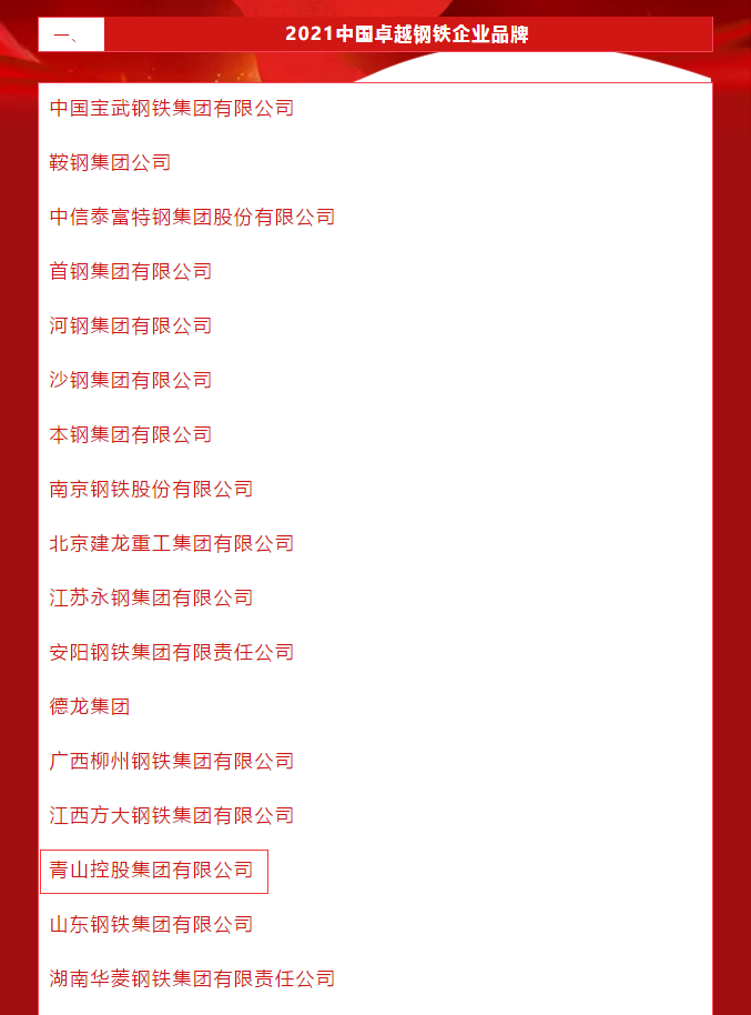 喜讯!jinnianhui今年会控股集团荣膺2021中国卓越钢铁企业品牌获奖名单