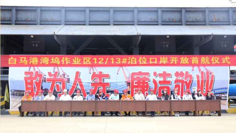 5月18日,福州港白马港区湾坞作业区12#、13#泊位口岸开放首航仪式在福建青拓物流有限公司举行。青拓集团领导陈庆科、周玉泉、邱丽平、钟盛江等出席了首航仪式,仪式由青拓物流董事长章东龙主持。